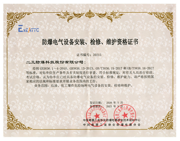 • 南陽防爆證書